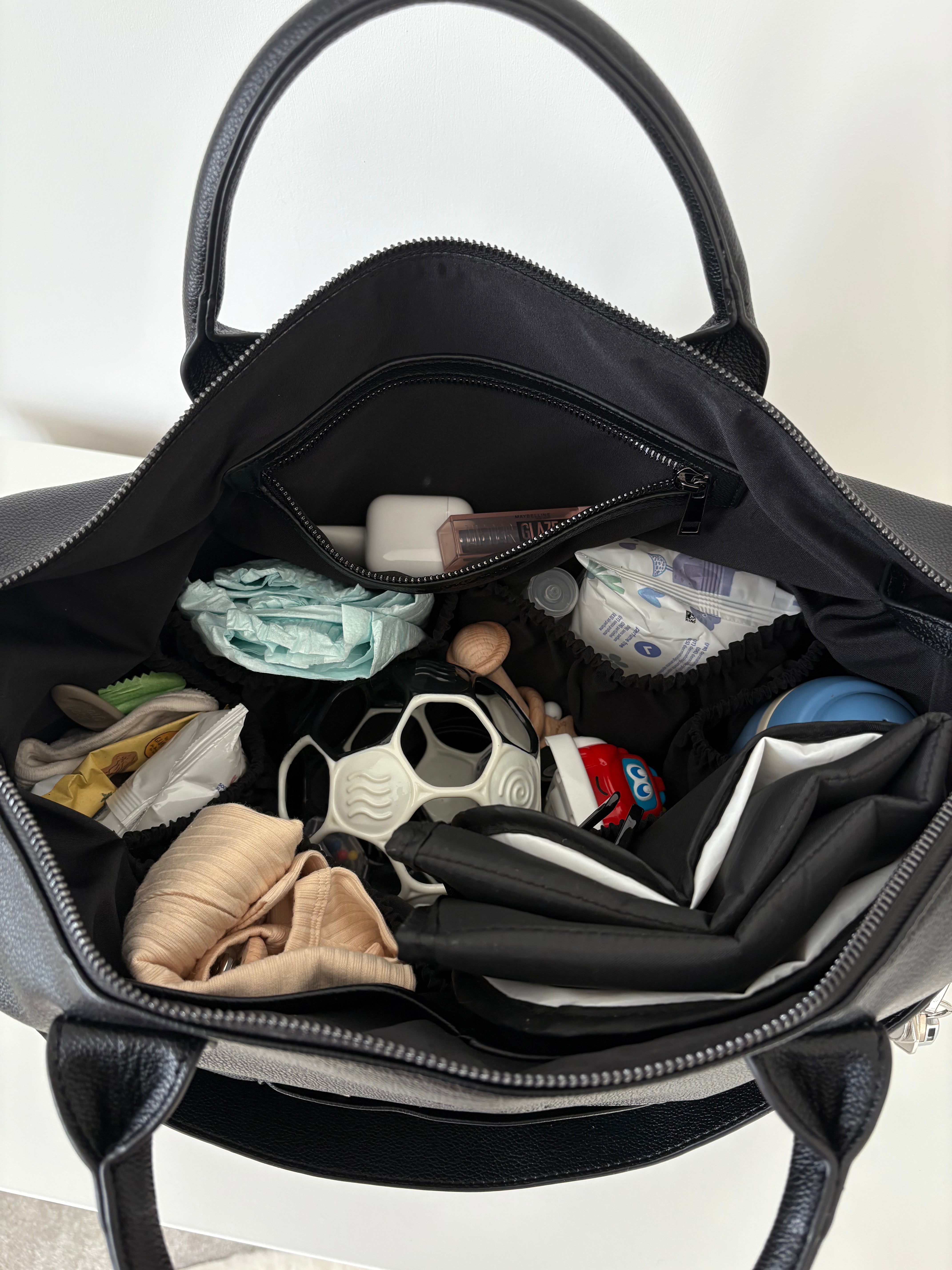 This versatile design adapts to your lifestyle: wear it as a sophisticated shoulder bag or convert it into a backpack with the included straps for those hands-free moments every mum needs. Inside, thoughtfully designed compartments keep nappies, wipes, bottles, and all the little essentials perfectly organised — no rummaging required.
